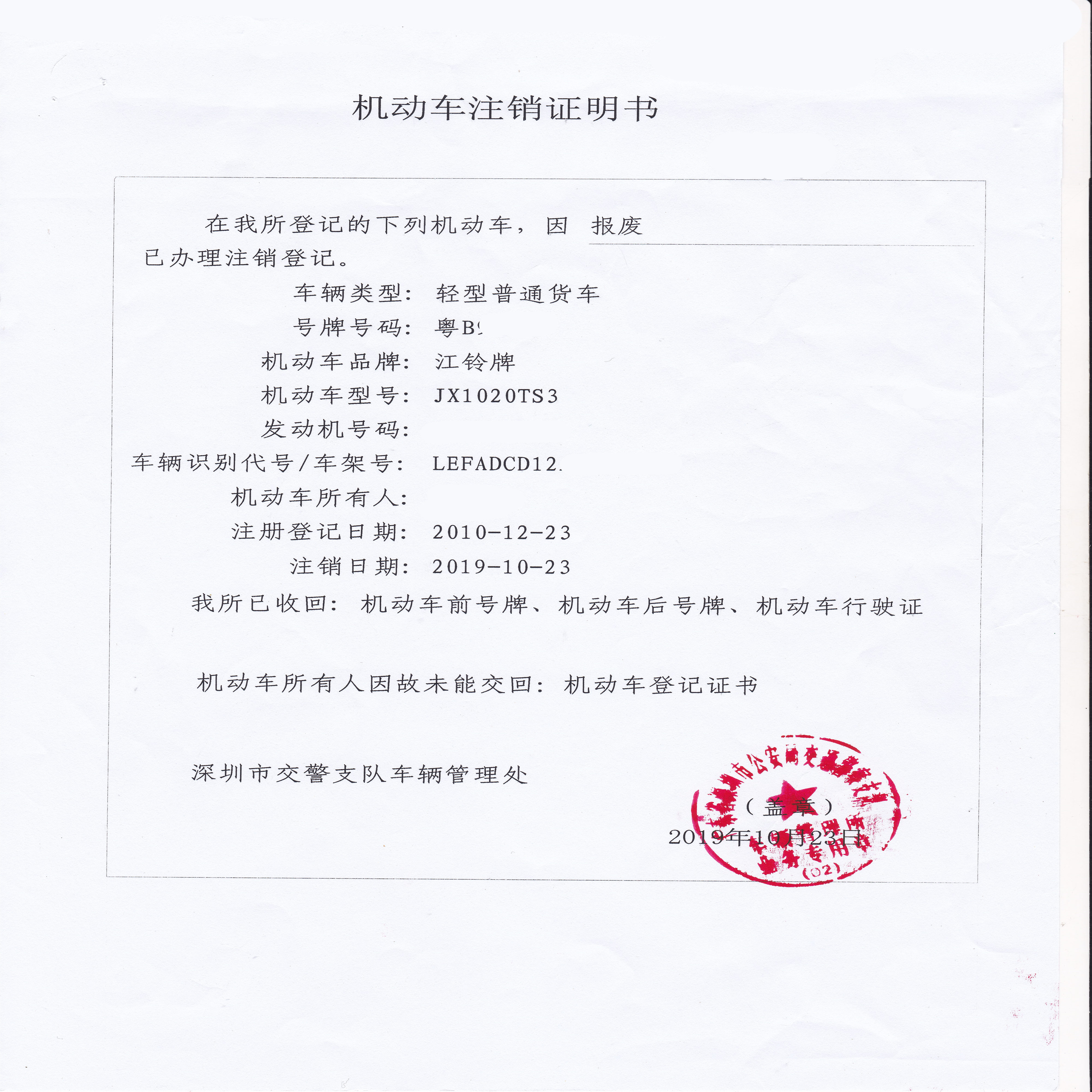 辦理深圳車(chē)輛正規(guī)報(bào)廢注銷(xiāo)